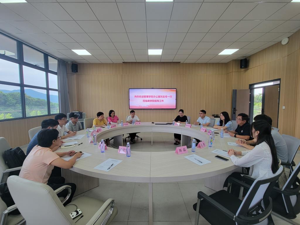 10月7日下午,管理公司党政办公室一行到阳江校区与商公司办公室开展调研与业务培训及交流工作,实地考察了商公司办公室、会议室、党员活动室、实验室等场所建设和使用情况。