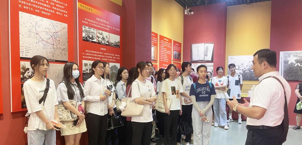 博物馆讲解员带领大家重点参观了“粤桂边区革命斗争史展览展区”和“从广州湾到湛江—湛江开埠百年历史展区”,详细地给大家介绍了大革命时期、第二次国民革命暨土地革命时期、华南抗日战争时期和解放战争时期粤桂边区各地党组织以大无畏精神和卓绝的斗争智慧深入人民群众中开展革命运动并取得最终胜利的艰难过程。