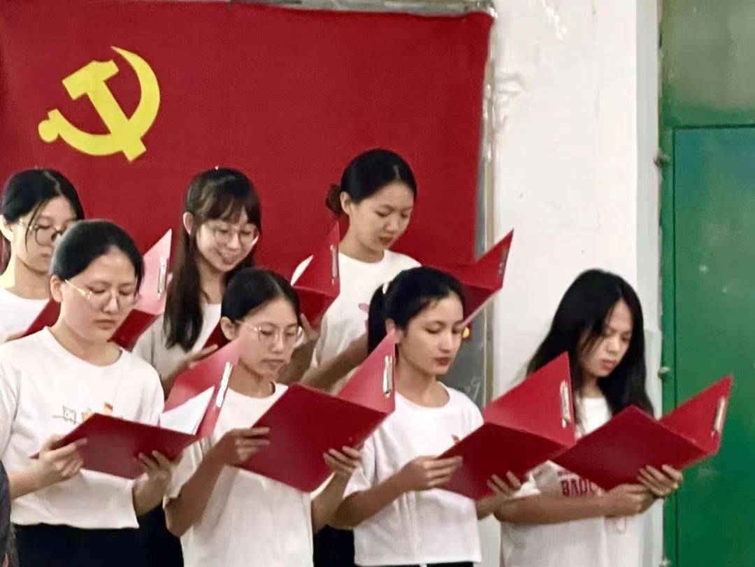 接着,全体党员分成五组进行朗诵,自行选择红色篇章搭配背景音乐、背景视频等全力诠释内心的情感。支部五个小组在活动中分别朗诵了《永远跟党走》、《青春》、《红色信仰》、《党旗飘飘》以及《少年中国说》五篇红色文章。第一组在朗诵前精心准备了其朗诵篇章《少年中国说》的相关介绍,让我们更加了解其创作背后的故事。每个小组均有背景音乐,背景图片和背景视频为其朗诵锦上添花,我们从声情并茂的朗诵中感受到各位党员同志对党和国家的忠诚与热爱,感悟到党和国家为人民矢志不渝的初心宗旨。