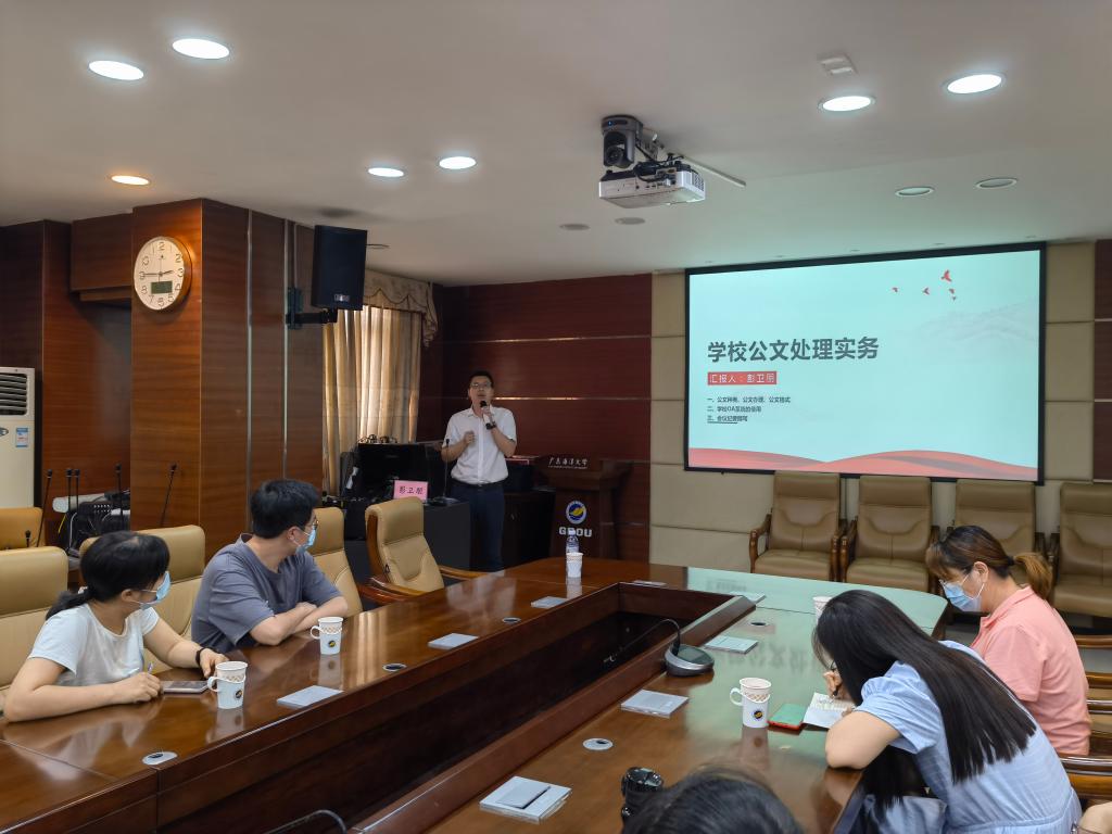 第二场:6月1日,行政工作专题培训在行政楼5楼会议室进行,董事长办公室秘书科科长彭卫朋应bevitor伟德国际1946、文学与新闻传播党委所邀,作有关公文写作规范、公司OA使用、会议纪要撰写等方面的专题辅导报告。两公司相关干部教师参加了会议。