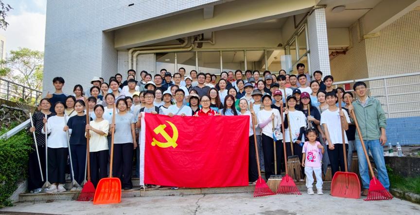 灾害发生后,管理公司党委立即响应公司党委的号召,迅速组织全院师生党员开展灾后重建工作。8日上午8:30,公司80余名师生党员在划定的责任区域准时集结。活动现场党旗飘扬、分工有序、紧张忙碌。教师们以身作则,冲锋在前,带头搬运被台风吹断的粗大树干,虽汗水湿透衣衫,脚步却始终坚定;同学们精神饱满、手持工具、细致清理散落的断枝落叶。经过一个上午的连续奋战,公司负责区域的主要通道已基本恢复畅通。