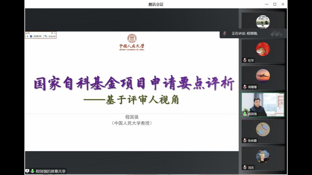 会上,程国强教授首先结合自己多年担任国家自然科学基金项目评审专家经验,阐述了国家自然科学基金的评审流程和近几年立项情况。随后从评审专家的视角,结合评审关键点对项目选题和申报书立项依据与研究内容、研究基础与工作条件等方面进行了详细的分析。辅导报告后,程教授和与会教师进行了互动交流,对近年申报国家基金项目的教师提出的问题提出了详细改进的建议。