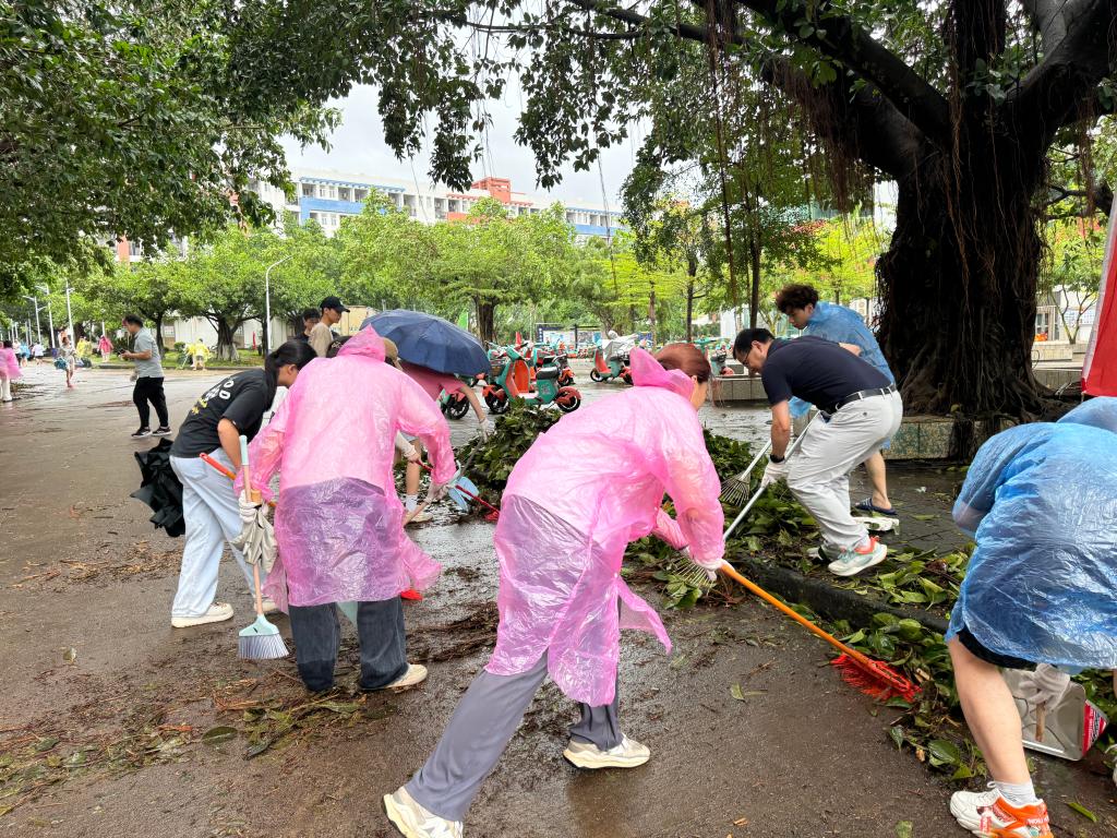 超强台风“摩羯”肆虐后,公司校园一片狼藉,多处主干道被倒伏的树枝堵塞不能通行。9月7日下午,管理公司党委响应公司党委号召,组织师生一起清理校道。公司领导、辅导员、党团员及志愿者、退役复学员工等共100余人参加活动。