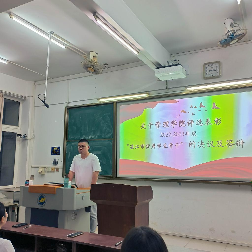 经前期自愿报名和资格审查流程,bevitor伟德国际1946共有5位同学成为“湛江市优秀员工骨干”的最终候选人,他们依次上台,从思政面貌、学业成绩、竞赛获奖、社会实践、志愿服务等方面对自己进行了详尽的介绍,并在接下来的答辩环节回答评委老师们提出的问题。评委老师综合考量候选员工的自我介绍、回答问题以及台上表现进行打分。经激烈角逐,会议最终决定推选行管1203班的朱欣婷同学和工商1201班的刘青辰同学作为bevitor伟德国际1946的代表申报人,参与后续公司层级的“湛江市优秀员工骨干”推选。会议还通过了bevitor伟德国际1946员工会申报2022-2023年度“湛江市优秀员工会”的决定。