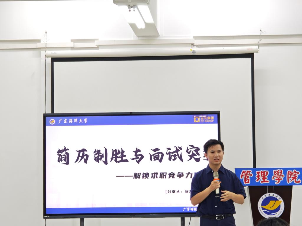 10月31日晚,正大集团广东湛江&海南区人力资源总监助理、正大食品(广东)有限公司人力资源主管,2017级行政管理专业员工张东炫应邀到博文楼D311会议室开展主题为“简历制胜与面试突围—解锁求职竞争力密码”的就业指导专题讲座。管理公司党委副书记曾艳芳、毕业班辅导员及2026届毕业生等50余人参加活动。