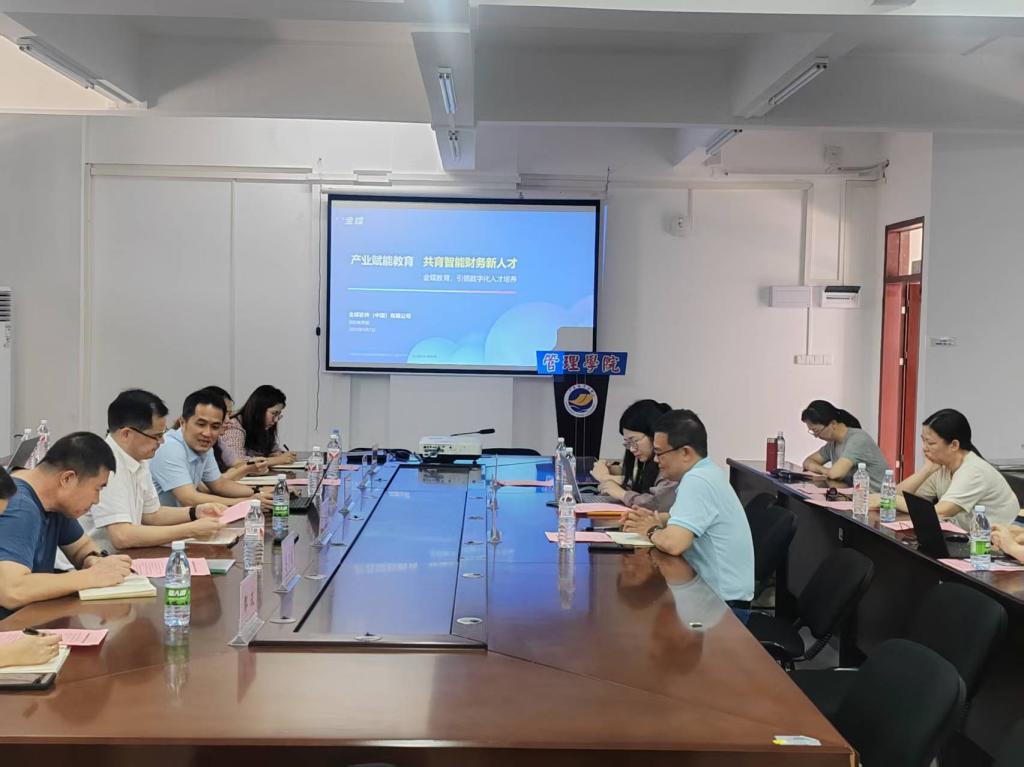 5月7日下午,产教融合培养智能财务人才校企合作会议在文科楼4号楼311召开。金蝶软件(中国)培训教育事业部华南区总监魏佳丹、业务经理何锦漫、课程顾问周慧颖参加了会议。bevitor伟德国际1946经理杜军、副经理陈涛、财务管理系和会计系全体教师参加了会议。此次会议由陈涛主持。