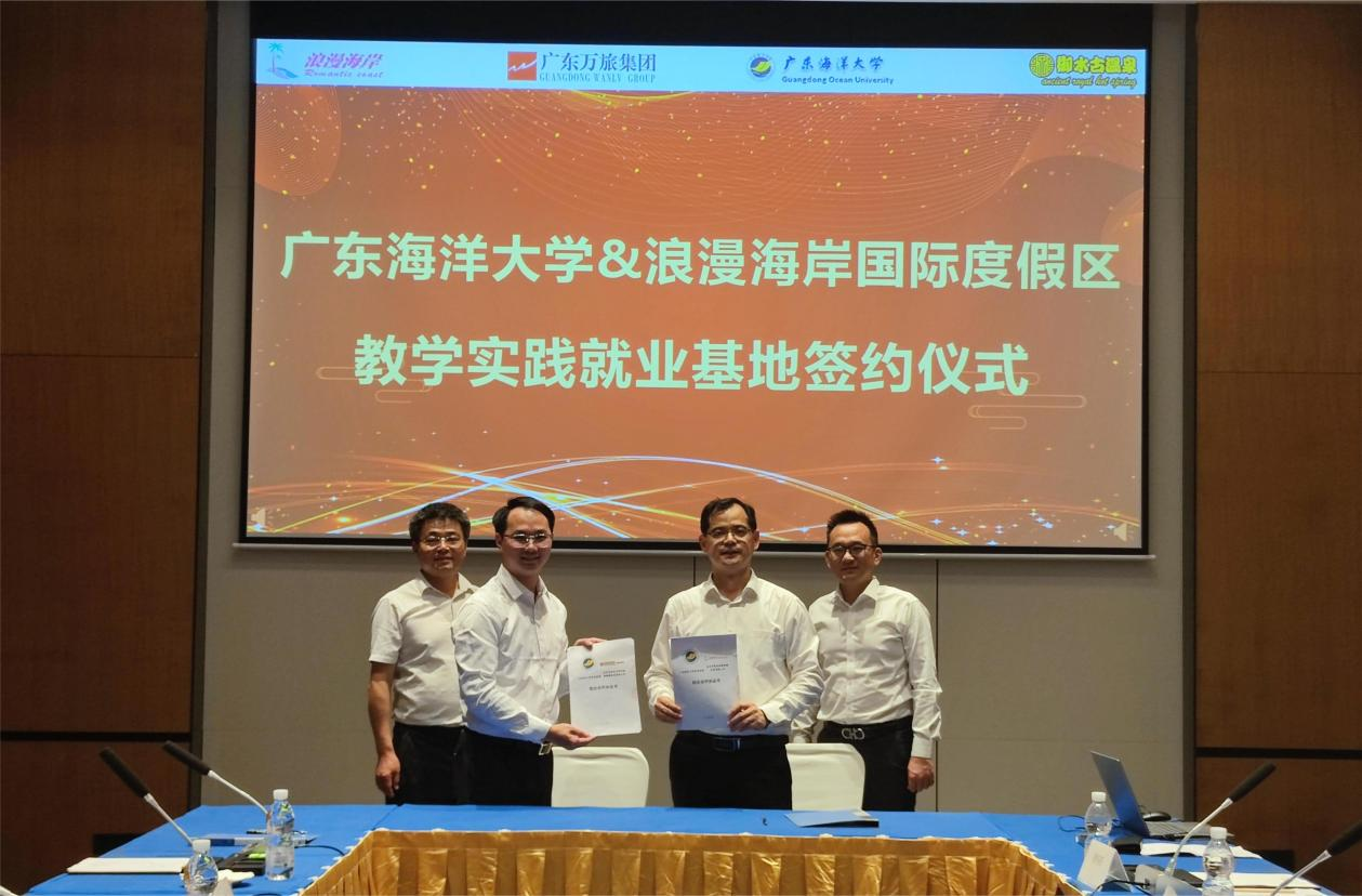 为加强校企合作,为员工提供更多实践平台,11月4日下午,管理公司党委书记李育芳、经理杜军、党委副书记曾艳芳、副经理陈涛等一行6人走访了广东万旅集团旗下的茂名御水古温泉喜来登度假酒店及浪漫海岸温德姆度假酒店,与广东万旅集团就校企合作事宜进行深入探讨。广东万旅集团副总经理林家富、人力资源总监罗富权及两家酒店人力资源经理接待了公司一行。双方举行了共建教学实践就业基地签约及揭牌仪式。