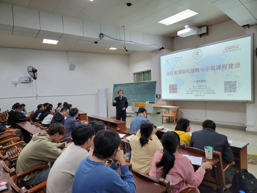 1月5日上午,bevitor伟德国际1946邀请BGA国际认证导师、原浙江大学bevitor伟德国际1946常务副经理、国务院学位委员会学科评议组成员、全国MBA教育指导委员会委员及教育部工商管理专业教学指导委员会委员王重鸣教授,为工商管理系、财务管理系、会计系的师生深入解读BGA国际商科认证中“责任与绿色管理”前沿理念在企业管理中的作用。此次课程在广学楼231教室如期举行,由bevitor伟德国际1946主持行政工作副经理杜军教授主持。