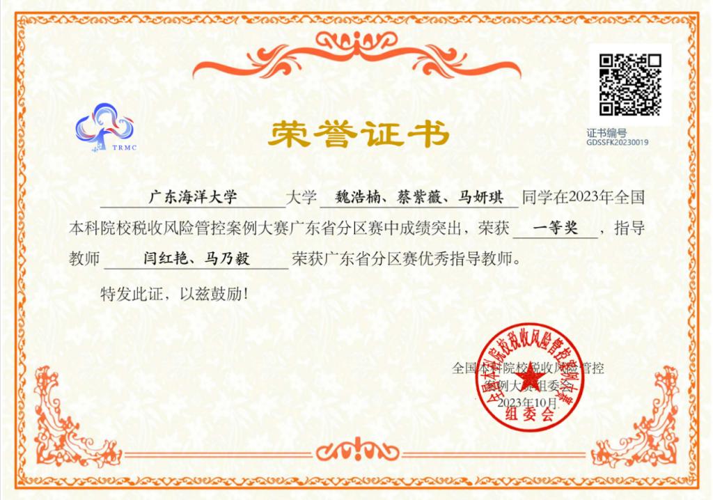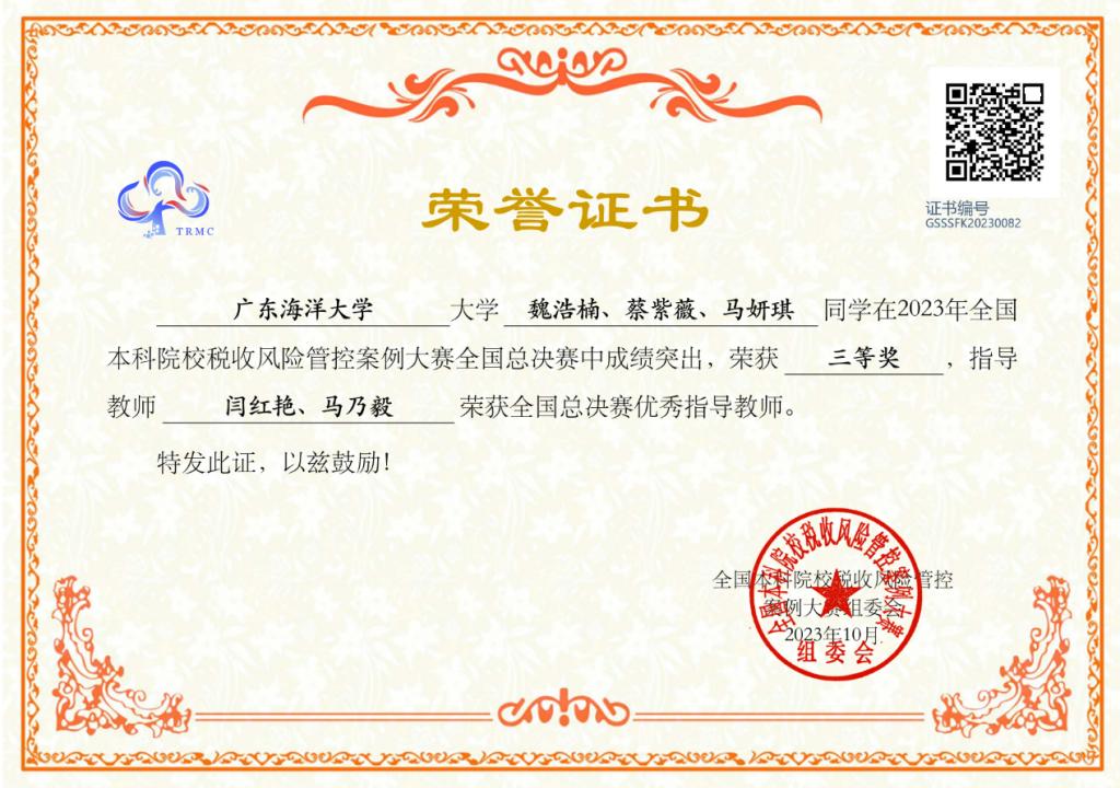 11月25日,2023全国本科院校税收风险管控案例大赛总决赛在浙江财经大学举行,此赛项系全国普通高校老员工竞赛榜单内竞赛项目,公司bevitor伟德国际1946会计学专业员工魏浩楠、蔡紫薇、马妍琪、曾惠琳、杨韵诗、吴星炫、李家欣、郭佳琬、吴雪容9名同学组成的三支代表队在会计系马乃毅和闫红艳两位老师指导下,荣获广东省赛一等奖1项和三等奖2项。同时获得一等奖的代表队取得参加总决赛的资格,并在总决赛中荣获三等奖。