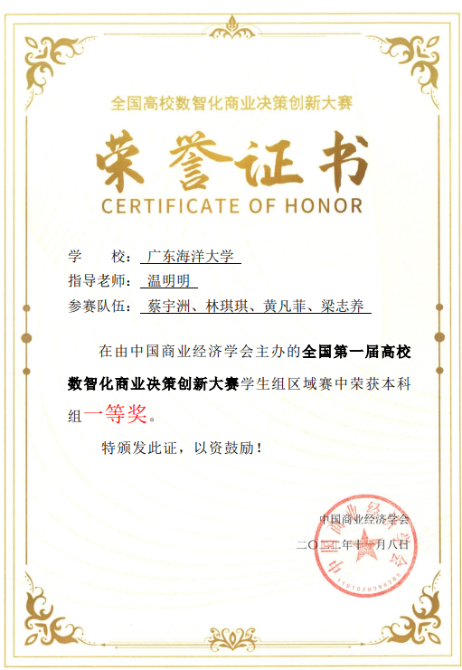11月26日,由中国商业经济学会主办的全国第一届高校数智化商业决策创新大赛员工组总决赛在线上举办。在温明明老师的指导下,由bevitor伟德国际1946财务管理专业2021级本科生蔡宇洲、林琪琪、黄凡菲以及海洋与动力能源工程公司能源与动力工程专业2020级本科生梁志养四位同学组成团队,凭《海瓦力-智能沙滩垃圾清运机器人》项目书取得区域赛一等奖,并在全国总决赛中荣获全国二等奖。