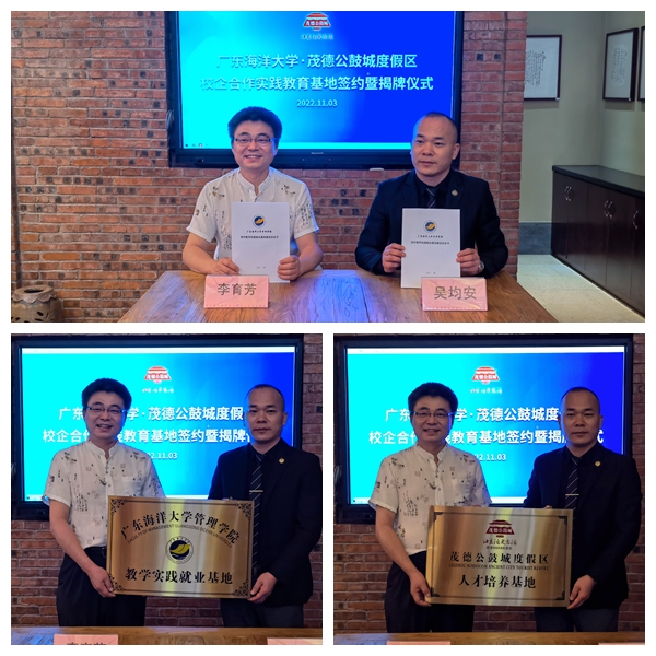 11月3日,管理公司党委书记李育芳、旅游管理系主任李志勇及党政办公室主任刘亮、教师代表郭鑫鑫等一行4人到雷州茂德公鼓城度假区调研,企业总经理吴均安、副总经理郑春香、梁德学及公司高层管理干部会见了一行。双方举行了座谈会,一致同意共建教学实践就业基地。