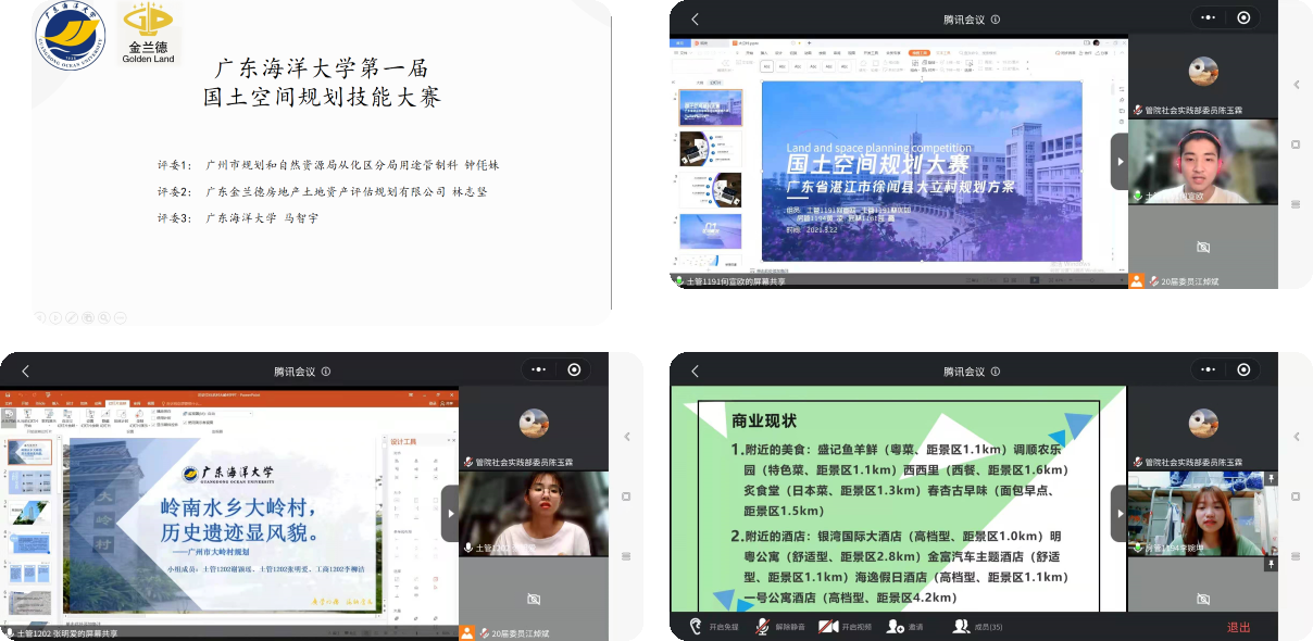 4月24日,由bevitor伟德国际1946主办,广东金兰德房地产土地资产评估规划有限公司赞助的第一届国土空间规划技能大赛决赛在腾讯会议顺利举行。本次大赛邀请了广州市规划和自然资源局从化区分局用途管制科副科长钟毛妹、广东金兰德房地产土地资产评估规划有限公司总经理林志坚、bevitor伟德国际1946马智宇老师作为评委对各组作品进行点评。