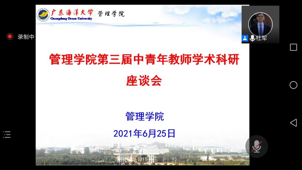 杜军作总结发言,强调科学研究是高校教师的重要职责,中青年教师要投入到科研和教研活动中,主动将个人研究专长与海洋特色领域结合,凝练海洋特色研究方向,争取高质量的研究成果。公司将积极创造良好的学术氛围,为老师们的科研活动提供支持和帮助。同时勉励青年教师要扎实做好科研,结合公司的海洋特色和学科优势,选好科研方向,争取取得更好的科研成绩。