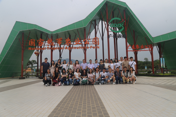 考察的第一站到了位于化州市的广东广垦热带农业公园有限公司,受该公司马松莲总经理的委托,副总经理李光华热情地接待了师生一行,并介绍了该公司的发展情况。李副总经理说该公司定位为以“科技、农业、旅游”为驱动力,以现代热带农业科技与生产体验乐园为主题,依托农业产业基础,以休闲、度假、学习为载体,推进产业融合发展的现代农业示范点。在李副总经理的带领下,师生考察了热带农业展示馆、四季花海、水果大观园等现代农业工厂化生产展示区,重点考察了茂名番石榴无公害标准化种植基地——广东农垦名富果业番石榴标准化生产示范园,我国最大的橡胶种苗繁育基地——广东农垦橡胶种苗繁育基地。