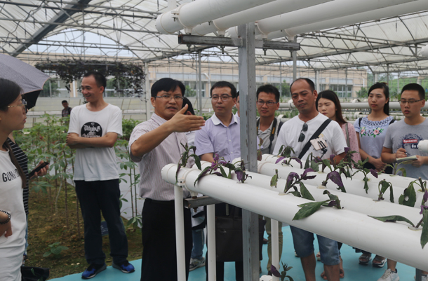 考察的第二站是高州市新芝泰农业科技有限公司,该公司朱卫培总经理热情地接待了调研团。在朱总经理的陪同下,师生考察了该公司的种植区、养殖区、食农教育区、农产品加工区、农事体验区和休闲娱乐区,其中,重点考察了该公司的有机番石榴种植示范基地、有机火龙果种植示范基地、智慧种植基地,以及珠茂火龙果庄园产业扶贫项目,该项目采用“公司+合作社+农户”的运作模式,在对口扶贫单位资金的支持下,通过发展龙头企业来壮大产业实现江口村整村脱贫。调研期间,校企双方还召开了座谈会,商讨了下一步深入开展合作的方向和领域。座谈会结束后,双方举行建立研究生实习基地的签约仪式和挂牌仪式。