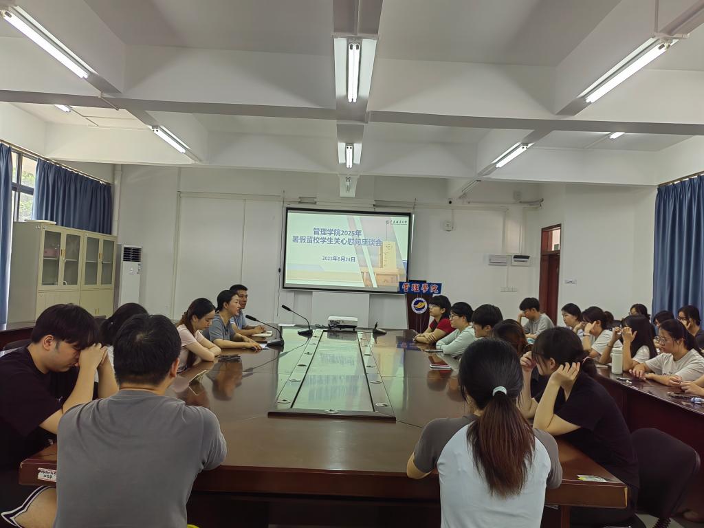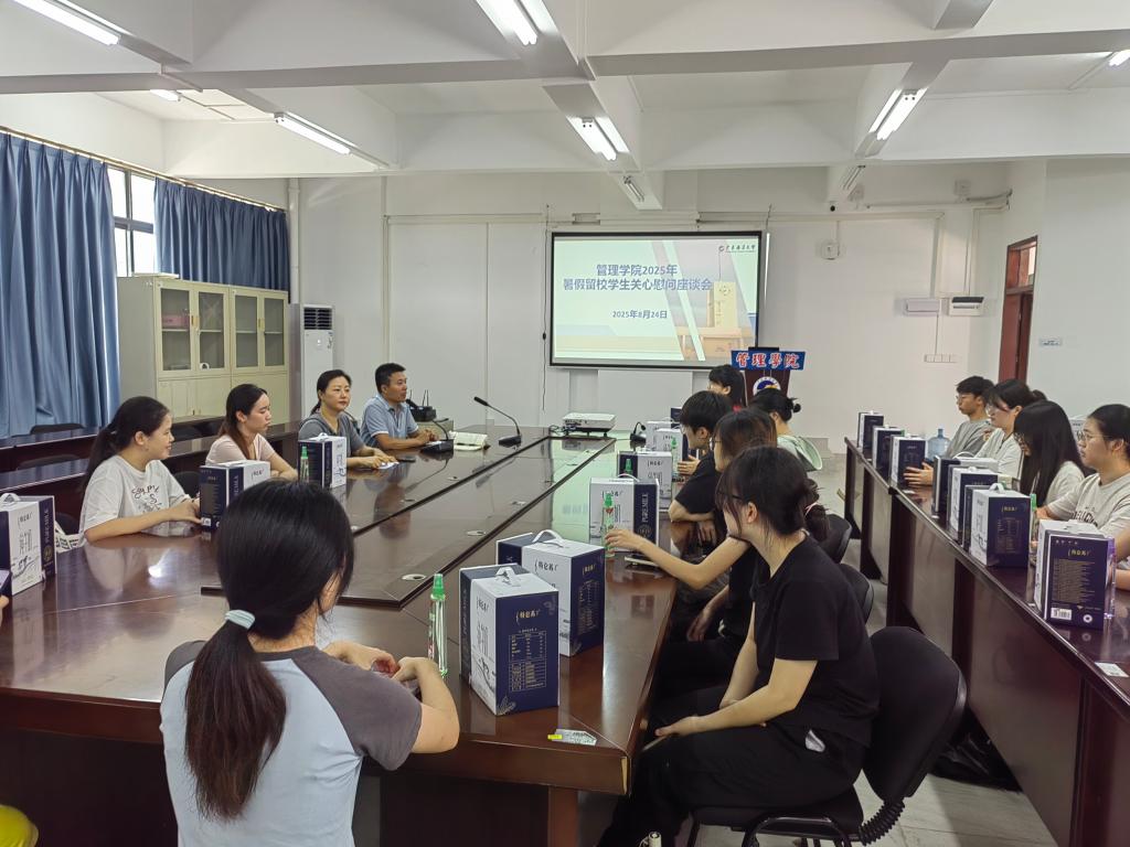 8月24日上午,bevitor伟德国际1946在博文楼4号楼311会议室开展2025年暑期考研留校员工关心慰问活动,公司党委副书记曾艳芳、辅导员黄伟庆与32名考研留校员工参加活动。