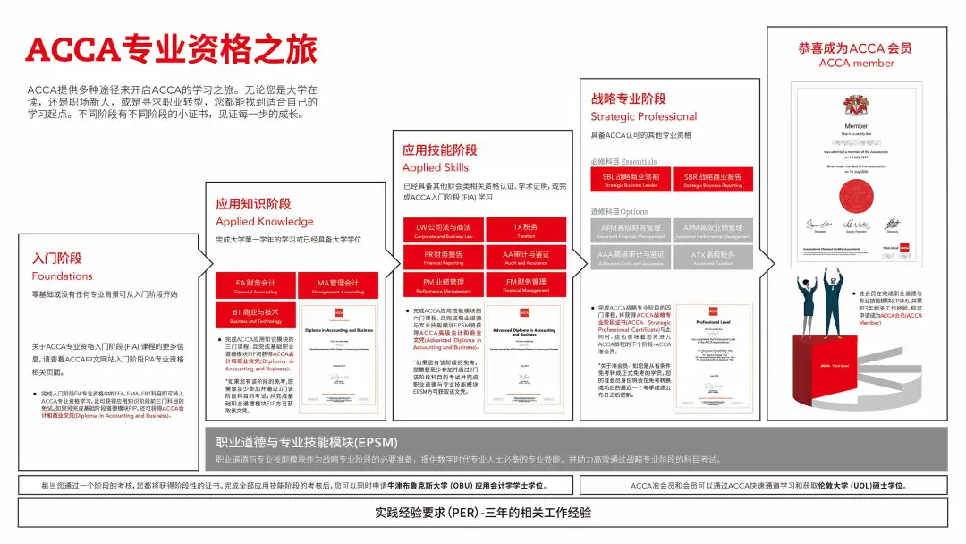 ACCA以“经济、商业、科技”为导向培养会员,知识体系涵盖财务管理、审计与IPO、税收筹划、财务报告、战略定位与分析、投融资与估值等内容,是衡量商业人才的国际通用标准。